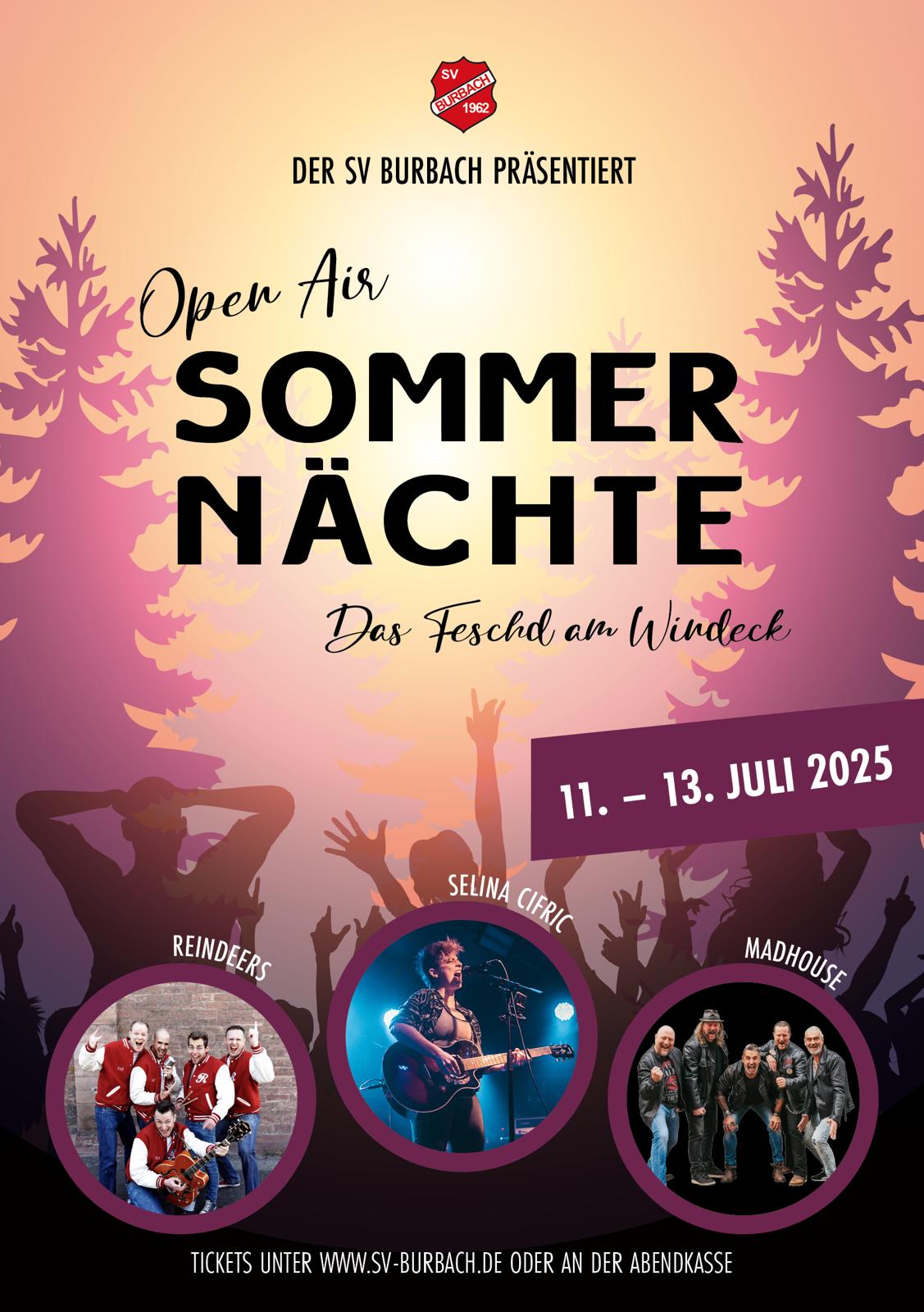 Anmeldung zum Windeck-Lauf, Tickets für die Abendveranstaltungen oder das Kombiticket für Freitag und Samstag gibtʼs ganz bequem über www.sv-burbach.de oder an der Abendkasse*. (*ausgenommen Windeck-Lauf und Kombiticket)